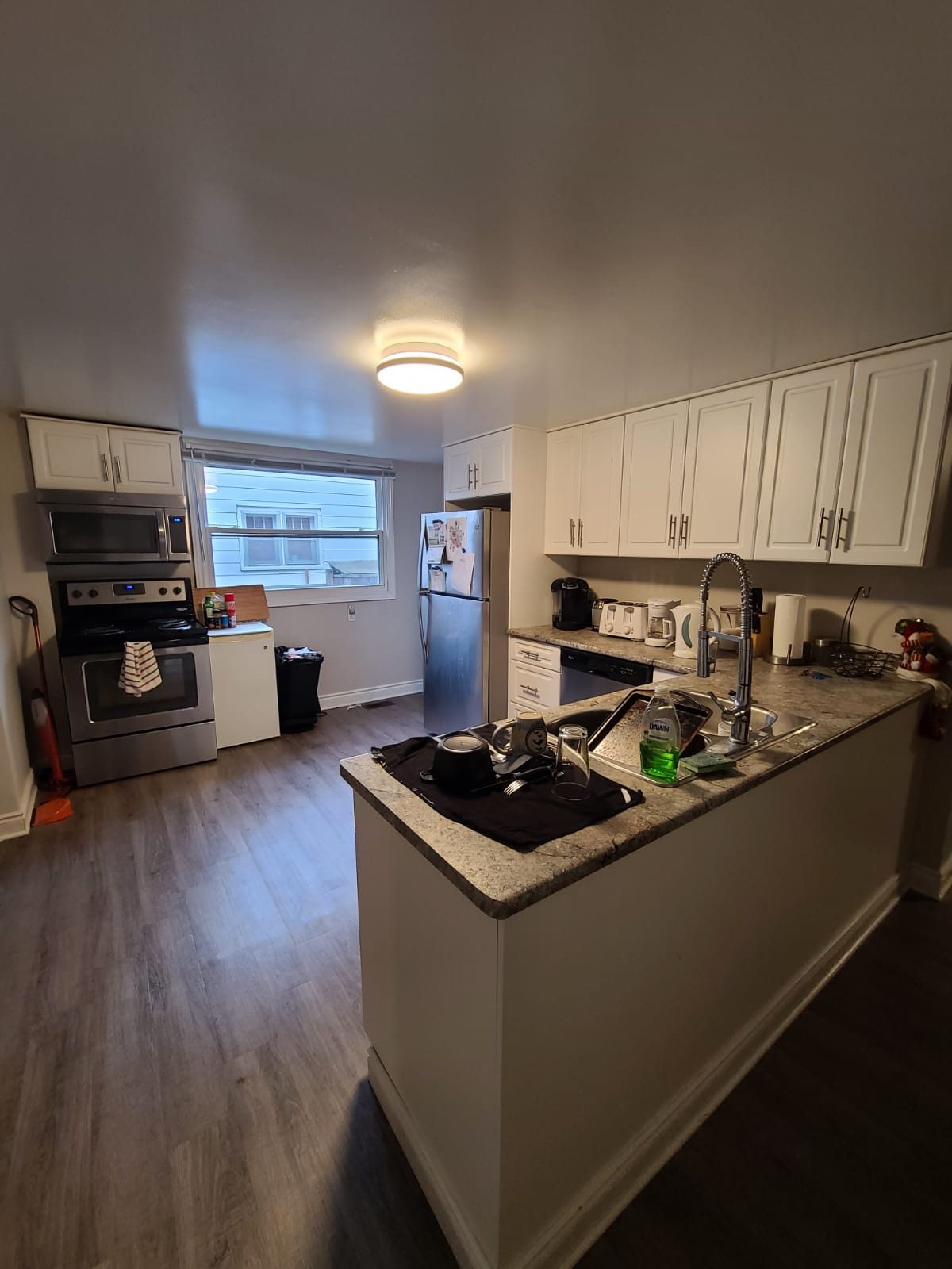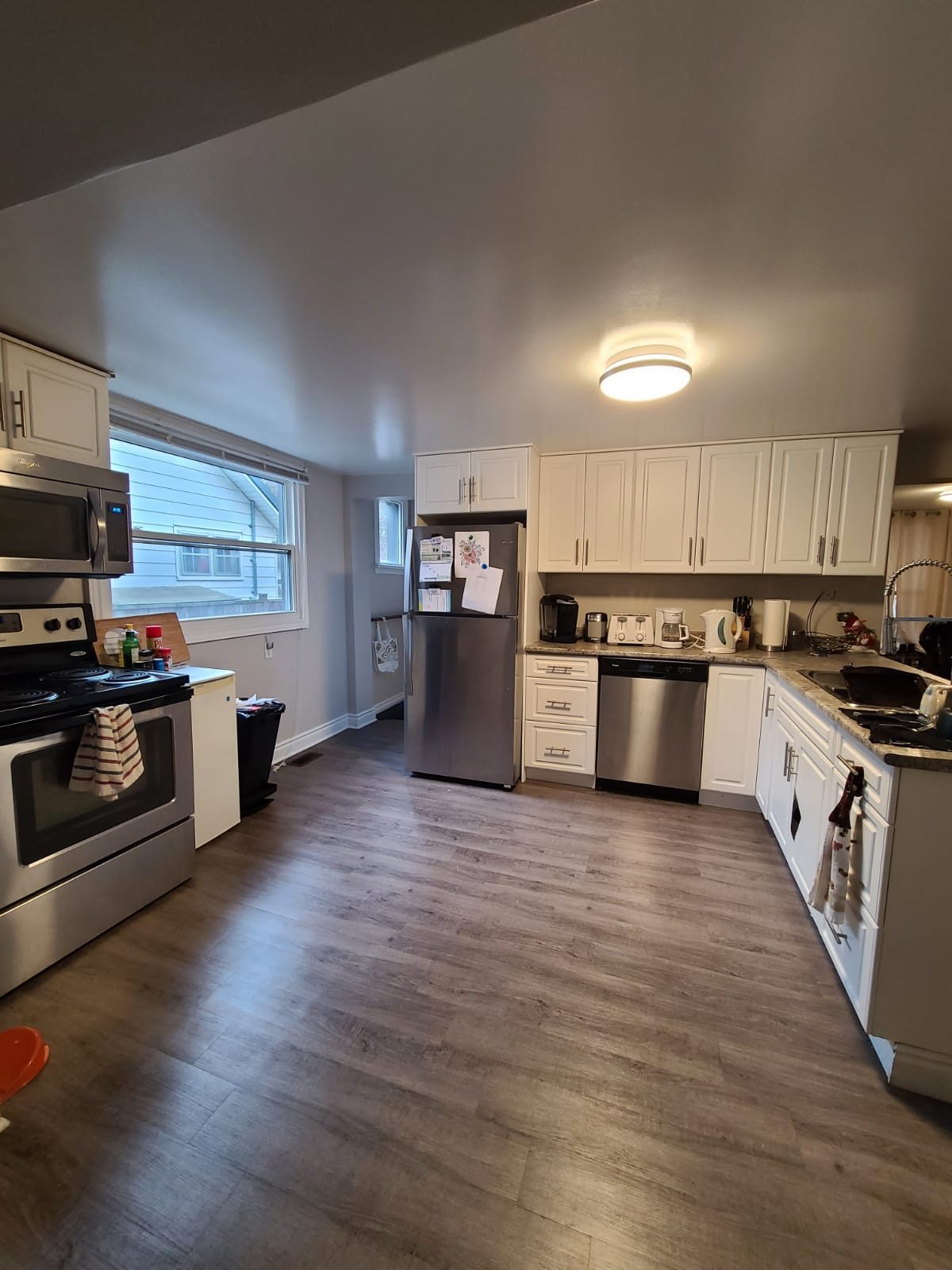 Enjoy the recently renovated house complete with eat-in kitchen with dishwasher and plenty of cupboard space and newer appliances. Large windows provide a bright and cheerful atmosphere – enough to motivate even the toughest students! Beautiful enclosed front porch, fenced in yard and plenty of parking.